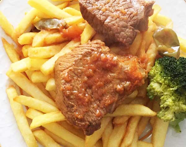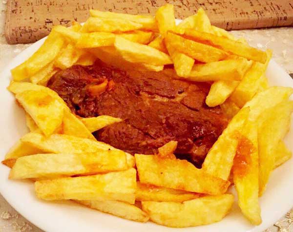 Μπιφτέκια με πατάτες τηγανίτες